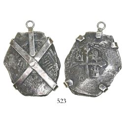 523 - Mexico City, Mexico, cob 8 reales, Philip V, assayer not visible, mounted in simple silver pendant-bSedwick & Associates, LLC