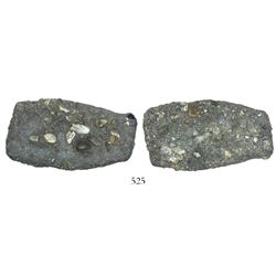Mexico City, Mexico, cob 8 reales, Philip V(?), assayer not visible, encrusted (as found). 32.06 grams. Square-shaped flan, with thick green-and-whit