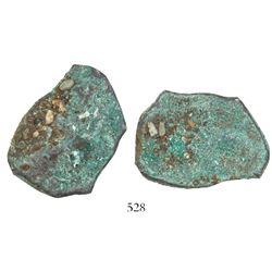 Mexico City, Mexico, cob 8 reales "greenie" (encrusted, as found), probably Philip V, assayer not visible. 26.07 grams. Beautiful green e...