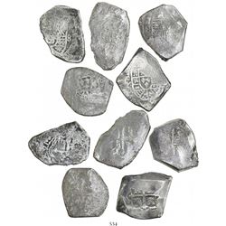 532 - Lot of 10 Mexico City, Mexico, cob 8 reales, Philip V, assayer J (where visible).Sedwick & Associates, LLC