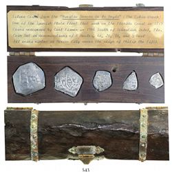 Denomination set of Mexico City, Mexico, 8-4-2-1-1/2 reales, Charles II and Philip V, assayer J or not visible, housed in custom wooden box made from