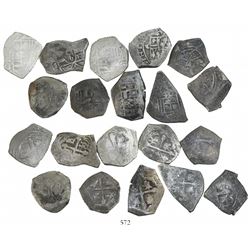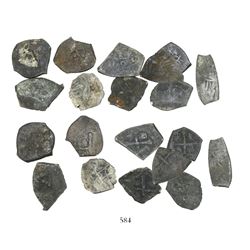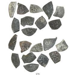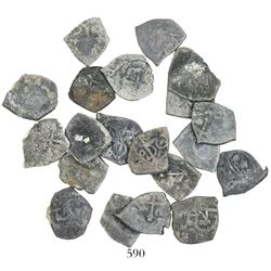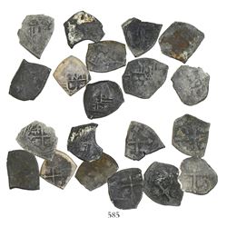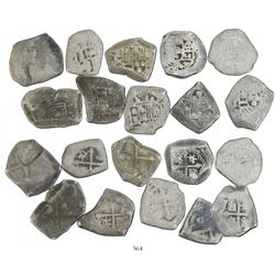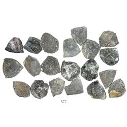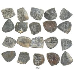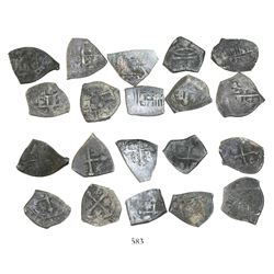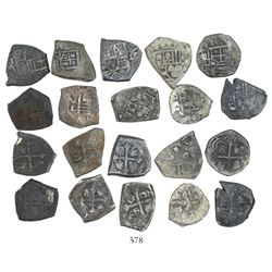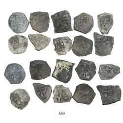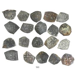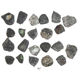 Lot of 20 Mexico City, Mexico, cob 1/2 reales, Charles II and Philip V, various assayers (where visible), uncleaned (as found). 28.78 grams total. So