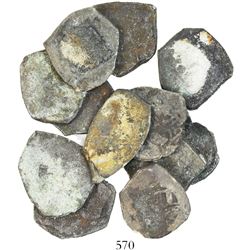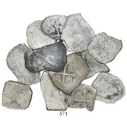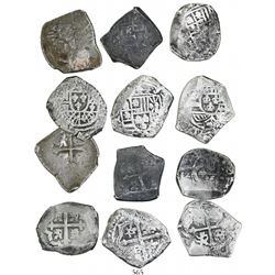 Lot of 12 Mexico City, Mexico, cob 2 reales, Charles II and Philip V, various assayers (where visible), all uncleaned (as found). 70.59 grams total.