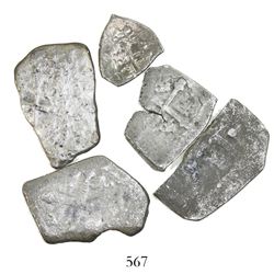 567 - Lot of 5 Mexico City, Mexico, cob minors (three 4R, one 2R and one 1/2R), Philip V, assayers not visSedwick & Associates, LLC
