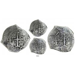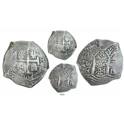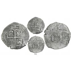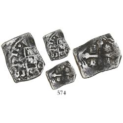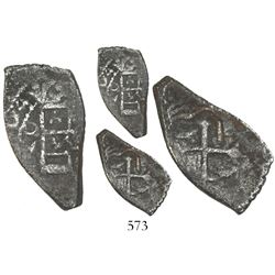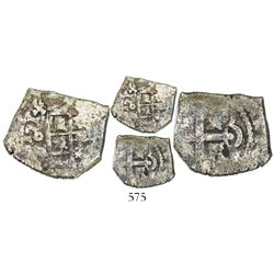 Lot of 5 Mexico City, Mexico, cob minors (three 4R, one 2R and one 1/2R), Philip V, assayers not visible. 30.15 grams total. Generally corroded but t