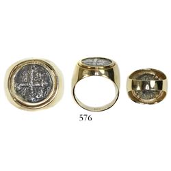 576 - Mexico City, Mexico, cob 1 real, Philip V, assayer not visible, mounted in 14k gold men's ring.Sedwick & Associates, LLC
