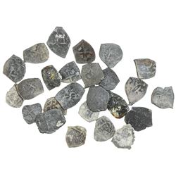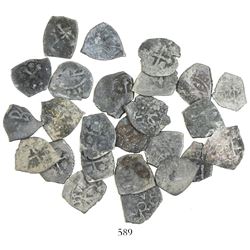 Lot of 25 Mexico City, Mexico, cob 1/2 reales, Charles II and Philip V, various assayers (where visible), uncleaned (as found). 36.50 grams total. So