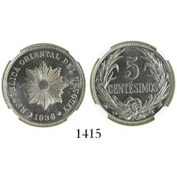 1415 - Uruguay (struck in Paris), copper-nickel 5 centesimos, 1936-A, encapsulated NGC MS 65, finest known Sedwick & Associates, LLC