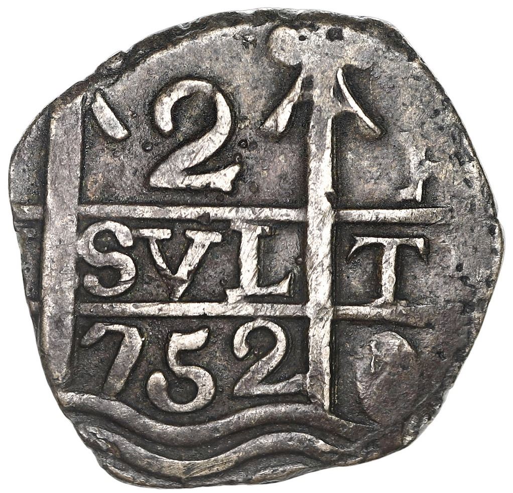 Tucuman, Argentina, "imitation cob" 2 reales, date "752" (official issue, struck 1820-24), proper qu