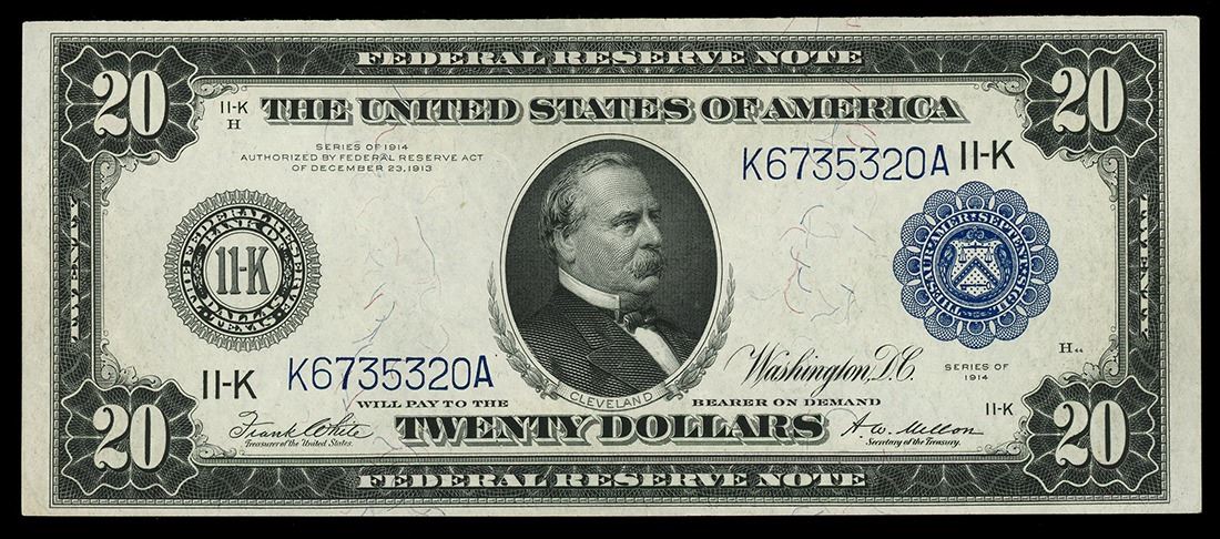 UNITED STATES, $20 Federal Reserve Note, series of 1914, serial K6735320A, White-Mellon.