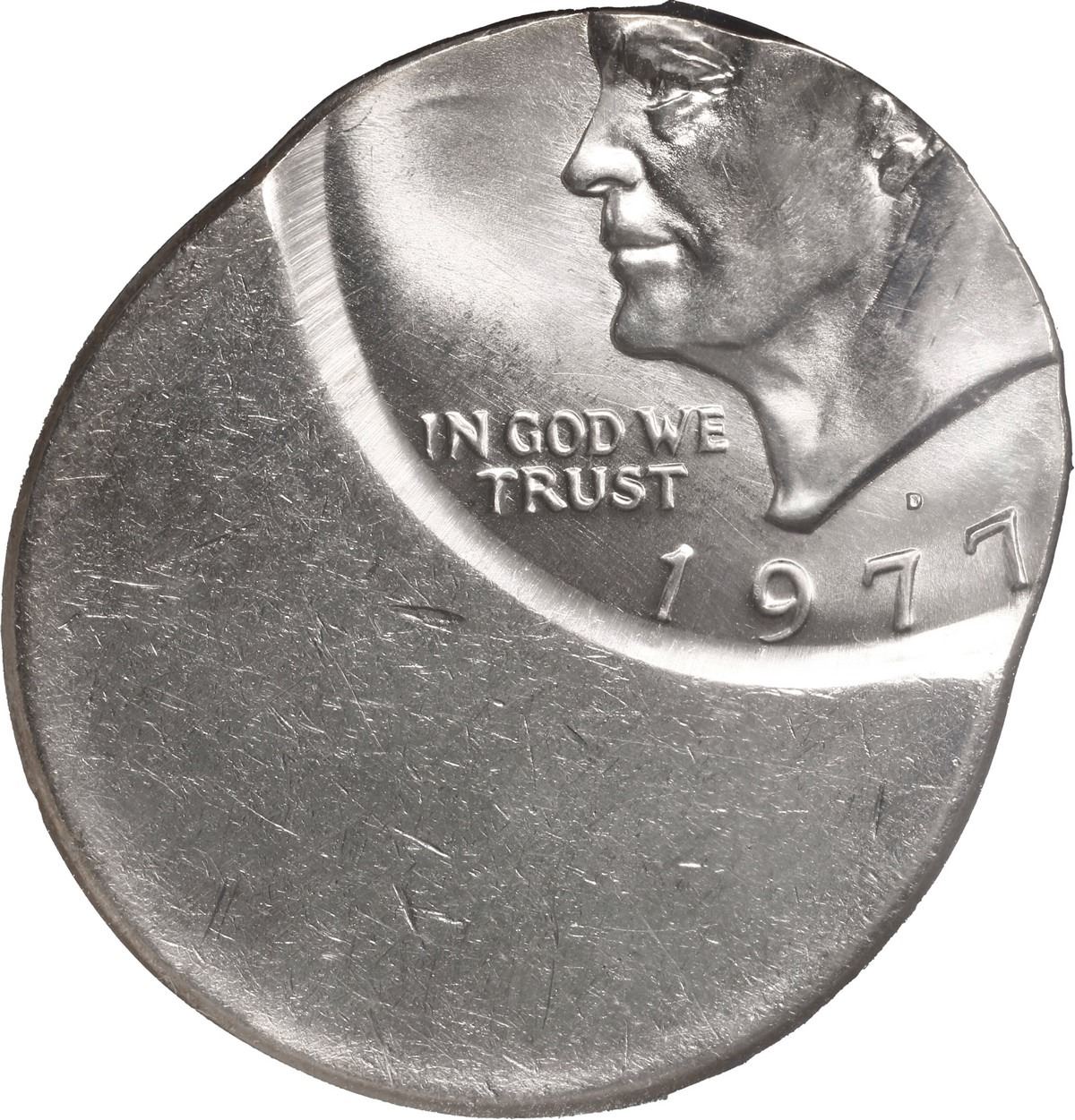 UNITED STATES, Denver mint, copper-nickel Eisenhower dollar, 1977-D, struck 50% off-center error, NG