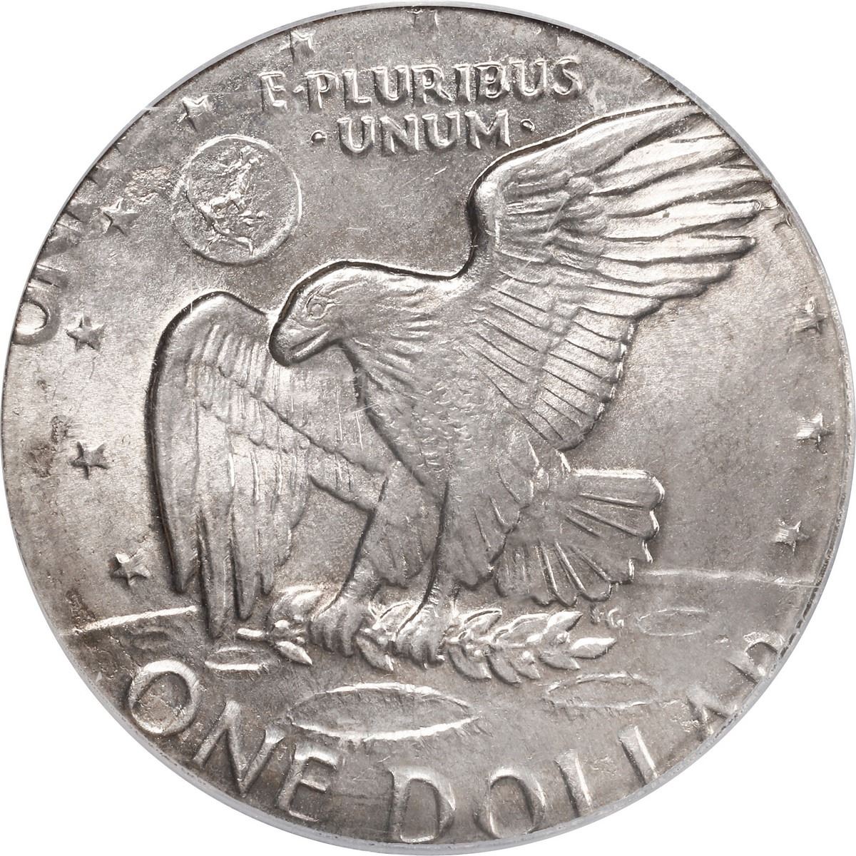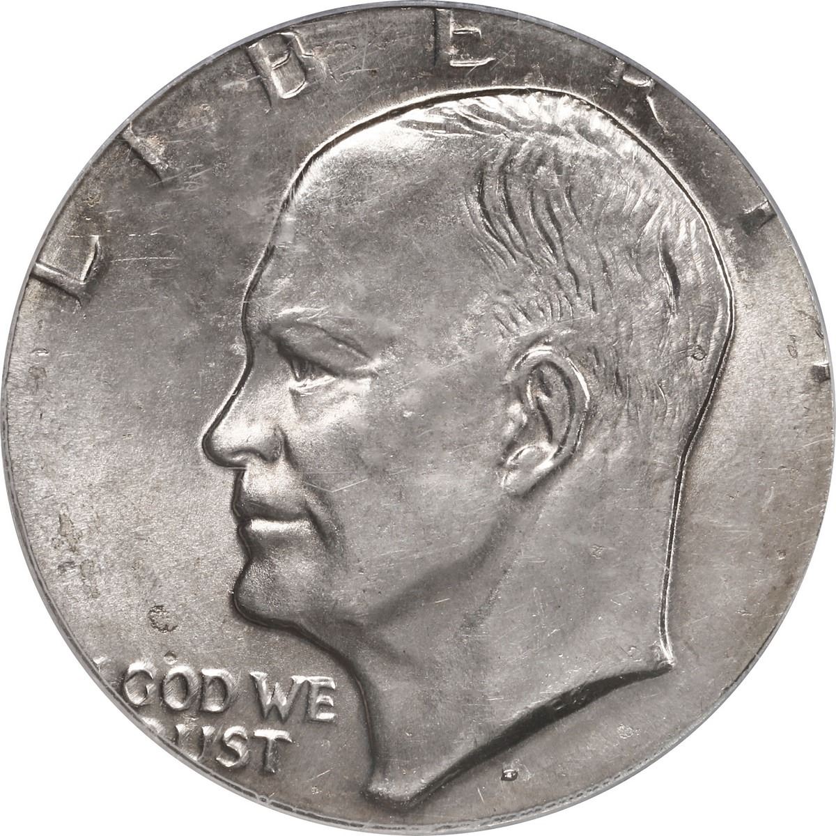UNITED STATES, Denver mint, copper-nickel Eisenhower dollar, no date (1971-74, 77-78), struck on a 50 cents planchet error, PCGS MS64, ex-Busto. grams. Fascinating error with the Ike dollar design struck on a Kennedy half planchet. Since the planchet was well centered on the die, the central part of the design is quite bold, yet the date is not visible at all and only the date range of non-Bicentennial dollars can be given. A Brilliant Mint State example of this difficult to find error. Pedigreed to the José Busto Collection