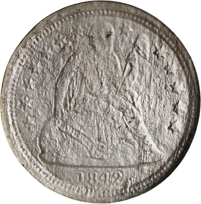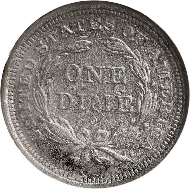 UNITED STATES, New Orleans mint, Seated Liberty 10 cents, 1842-O, NGC Shipwreck Effect (SS New York Shipwreck Label). Obverse with corroded surfaces but possessing a nice and detailed reverse with only minor salvage evidence. Recovered from: S.S. New York, sunk in 1846 off New Orleans