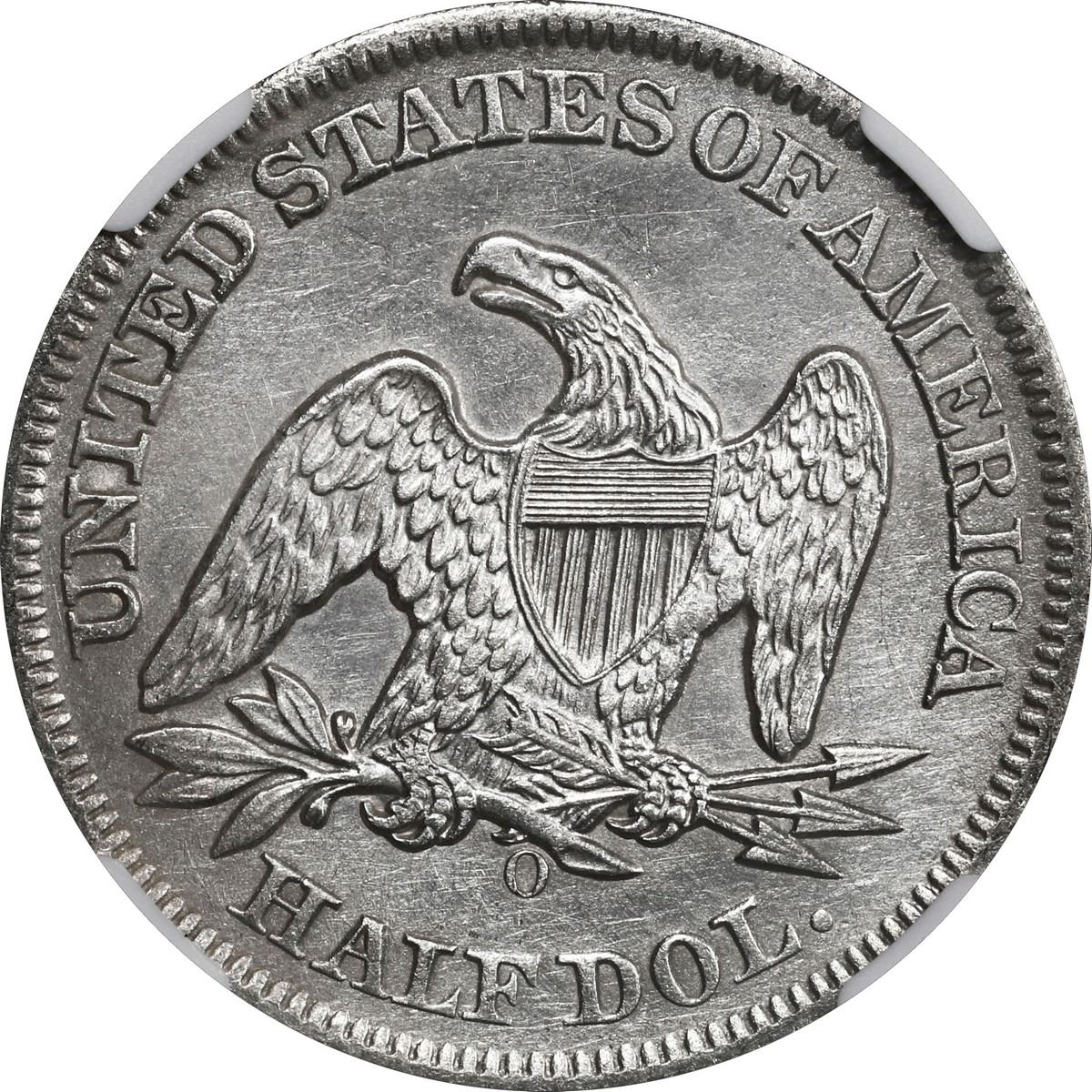 UNITED STATES, New Orleans mint, Seated Liberty half dollar, 1859-O, NGC Shipwreck Effect (SS Republic Shipwreck Label). KM-A68. Sharply detailed Mint State piece with much luster, very minor surface corrosion and light hairlines from post-salvage cleaning. Recovered from: S.S. Republic, sunk in 1865 off Georgia