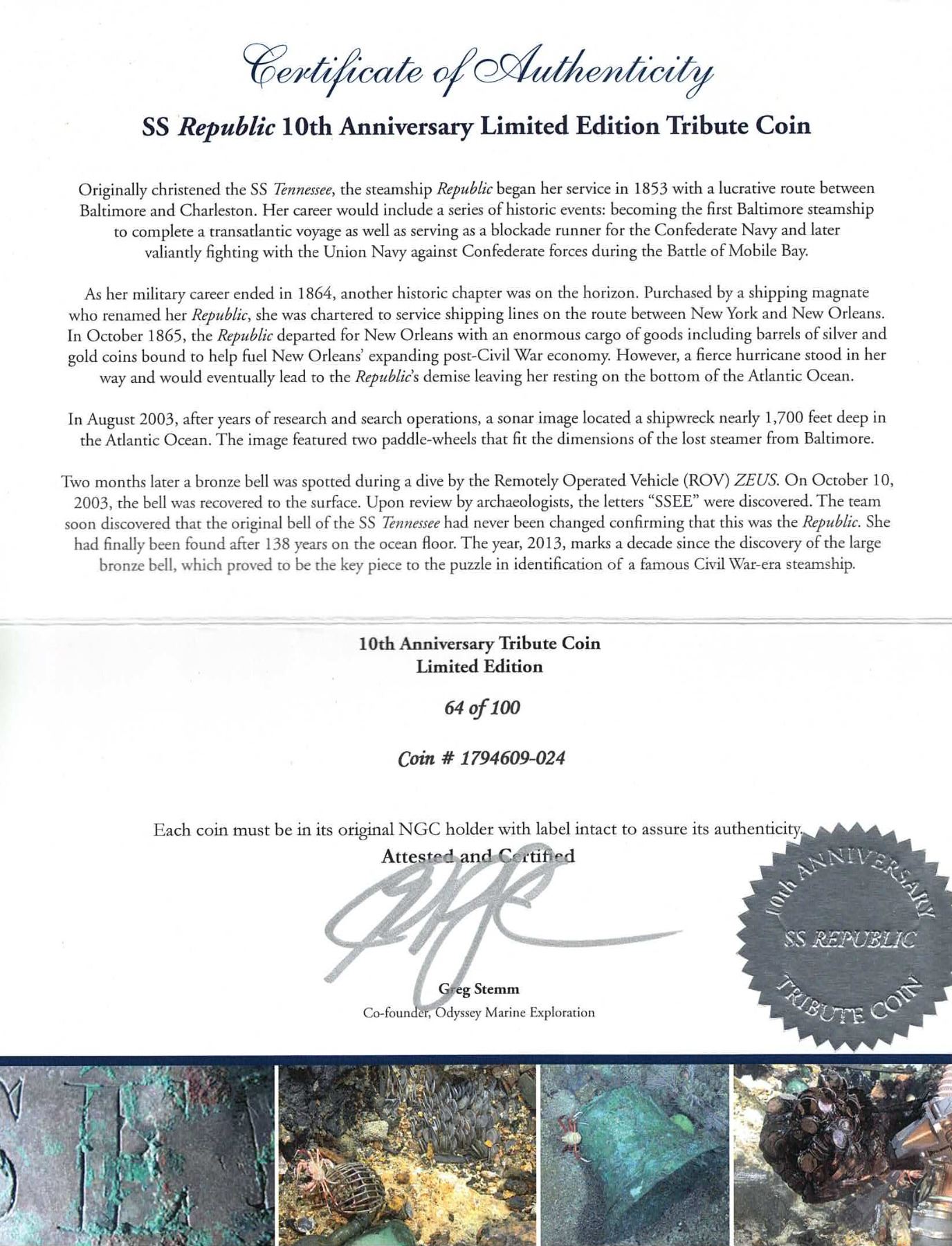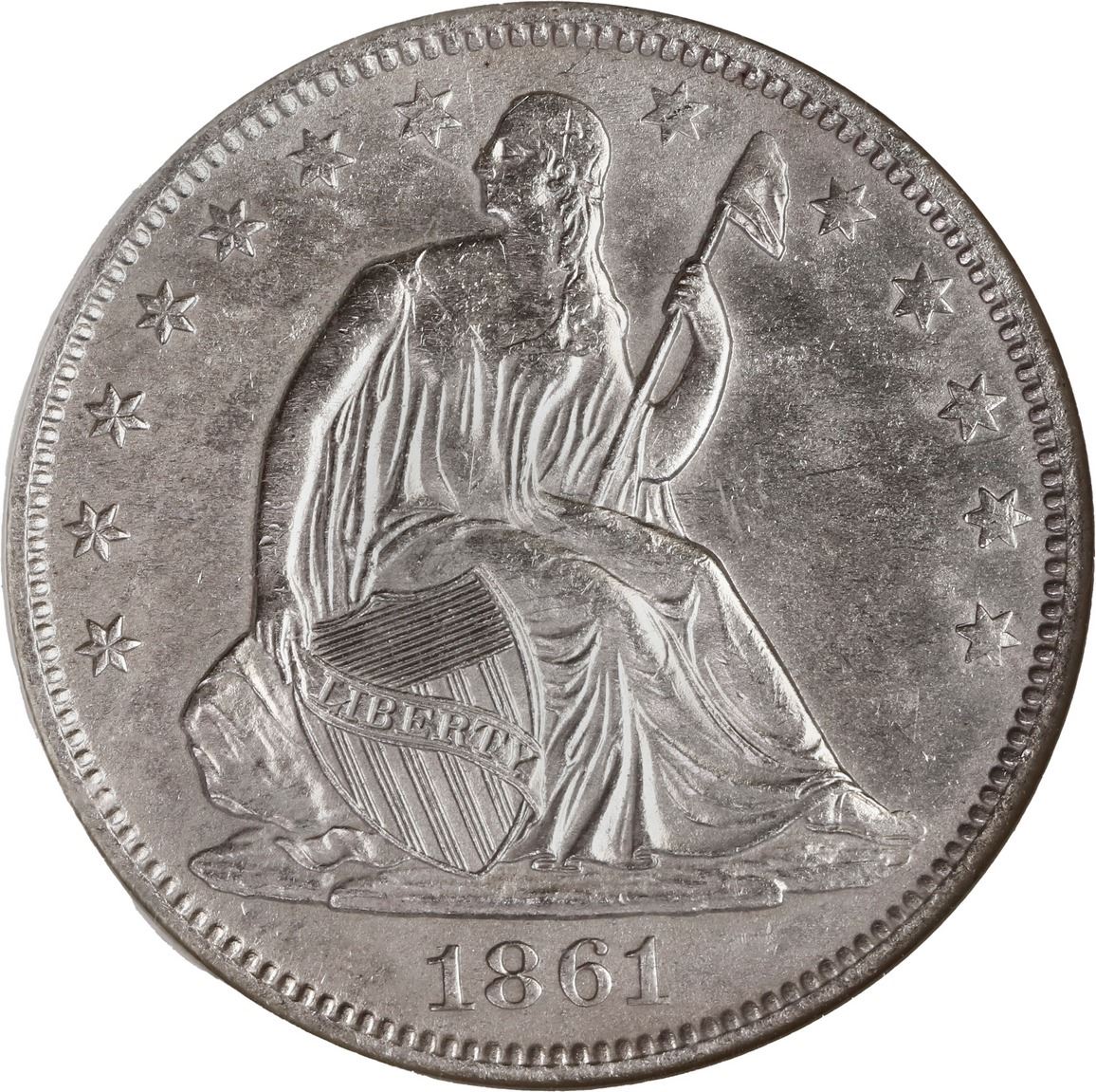 UNITED STATES, New Orleans mint, Seated Liberty half dollar, 1861-O, Confederate States issue (die W-11), NGC Shipwreck Effect (B) AU (SS Republic Shipwreck Label). KM-A68. Popular type struck at the New Orleans Mint in 1861 by the Confederate States of America. In fact, the obverse die used to strike this coin is the same one used to strike the very rare "Confederate States"-reverse half dollar (only four known). Choice AU details with significant mint luster and design sharpness, very light corrosion speckling to note. Housed in promotional wooden box in slipcase with original certificate and DVD. Recovered from: S.S. Republic, sunk in 1865 off Georgia