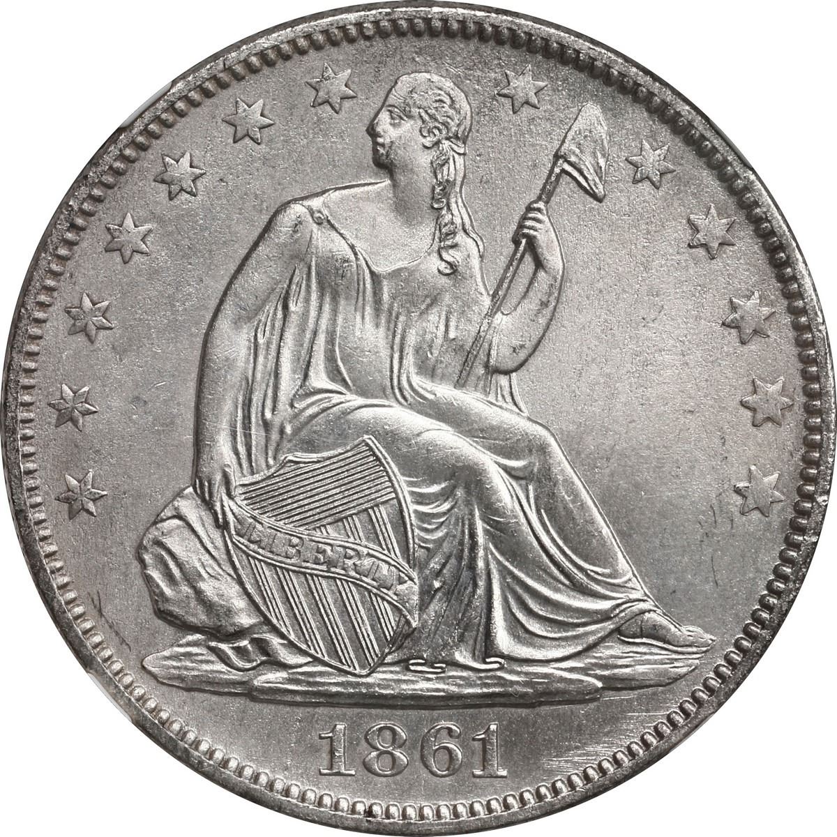 UNITED STATES, New Orleans mint, Seated Liberty half dollar, 1861-O, Confederate States issue (die W-13), NGC Shipwreck Effect (SS Republic Shipwreck Label). KM-A68. Struck by the authority of the Confederate States Treasury Department from March 21, 1861, until the supply of captured Federal silver ran out in April 1861. Nice example of this popular type with sharp Mint State details and plentiful luster, only faint elements of surface corrosion from its time underwater. Recovered from: S.S. Republic, sunk in 1865 off Georgia