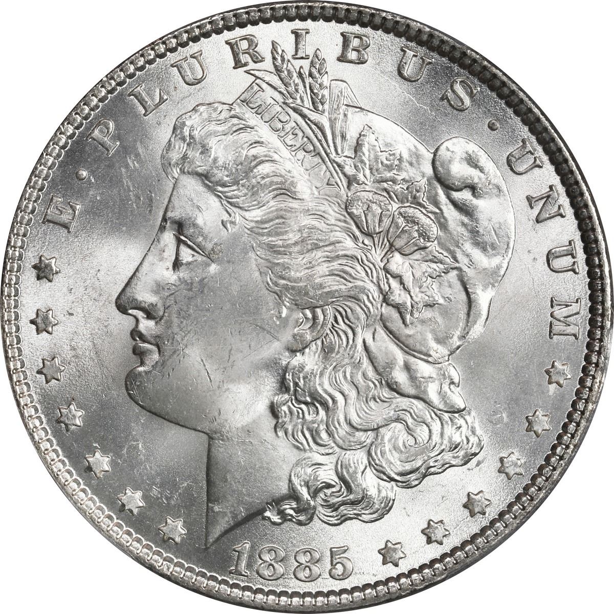 UNITED STATES, Philadelphia mint, Morgan dollar, 1885, PCGS MS64, ex-Busto. Silvery surfaces with plentiful cartwheel luster. Pedigreed to the José Busto Collection.