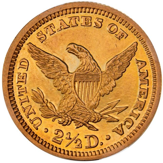 UNITED STATES, Philadelphia mint, gold proof $2½ coronet Liberty "quarter eagle," 1894, NGC PF 58. A very scarce proof with a low mintage of just 122 coins. Light friction in the mirror fields from handling, still retaining the sharply struck and lightly frosted devices as expected from a proof strike.