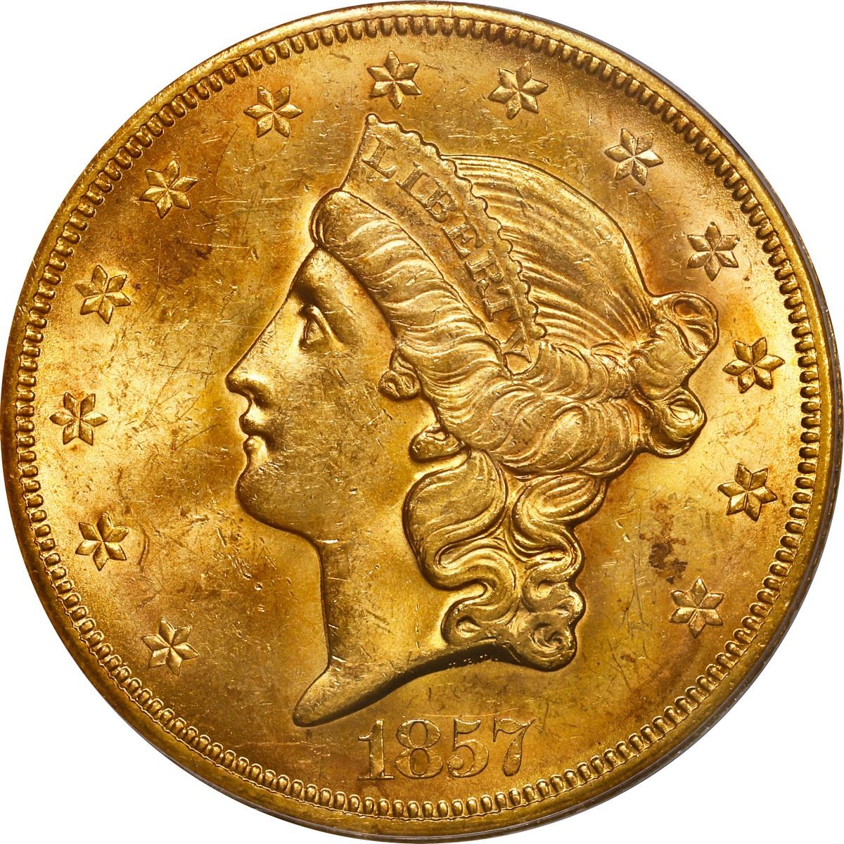 UNITED STATES, San Francisco mint, gold Coronet Liberty Head double eagle ($20), 1857-S, 20E broken
