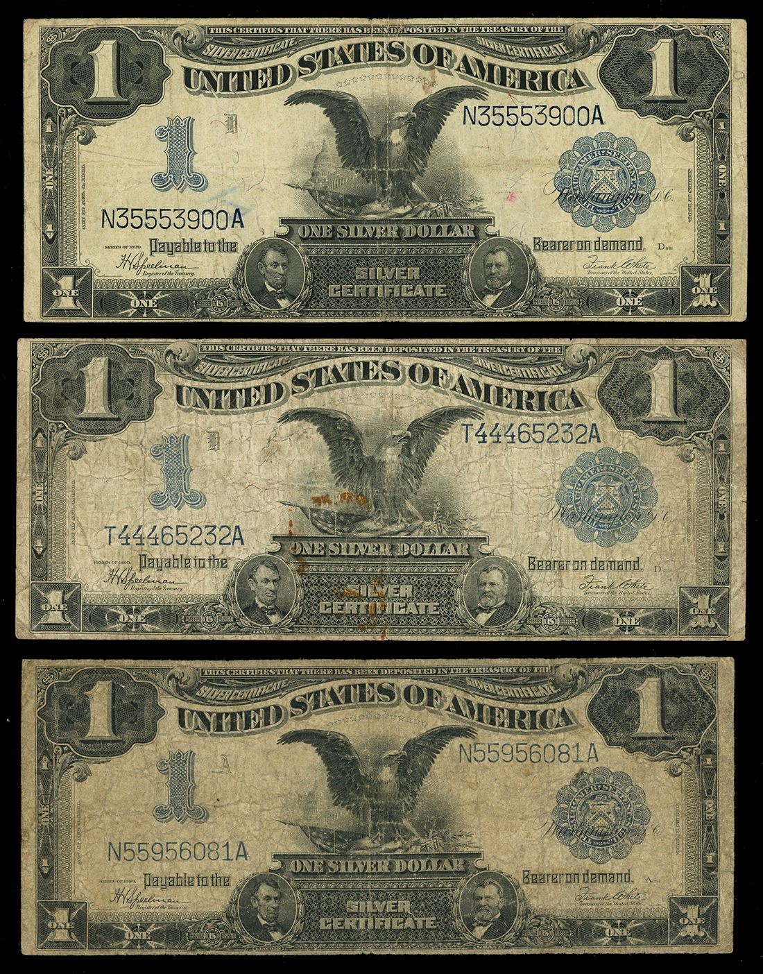 UNITED STATES, lot of three  black eagle  $1 Silver Certificates, series of 1899, Speelman-White.