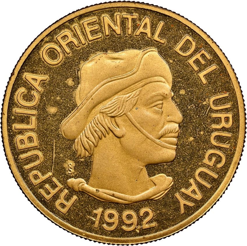 URUGUAY, struck in Santiago, gilt brass off-metal proof ½ gaucho, 1992, very rare, NGC PF 62 Ultra C