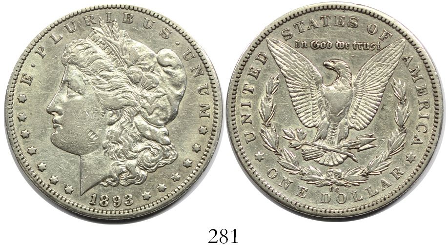 USA (Carson City mint), $1 Morgan, 1893-CC, rare.