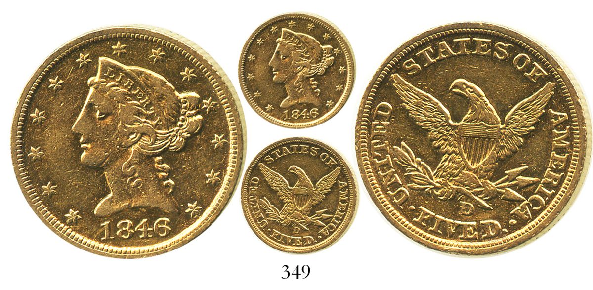 USA (Dahlonega mint), $5 (half eagle) coronet Liberty, 1846-D/D. KM-69. Cleaned XF with small rim-bruise on reverse, re-toning nicely.