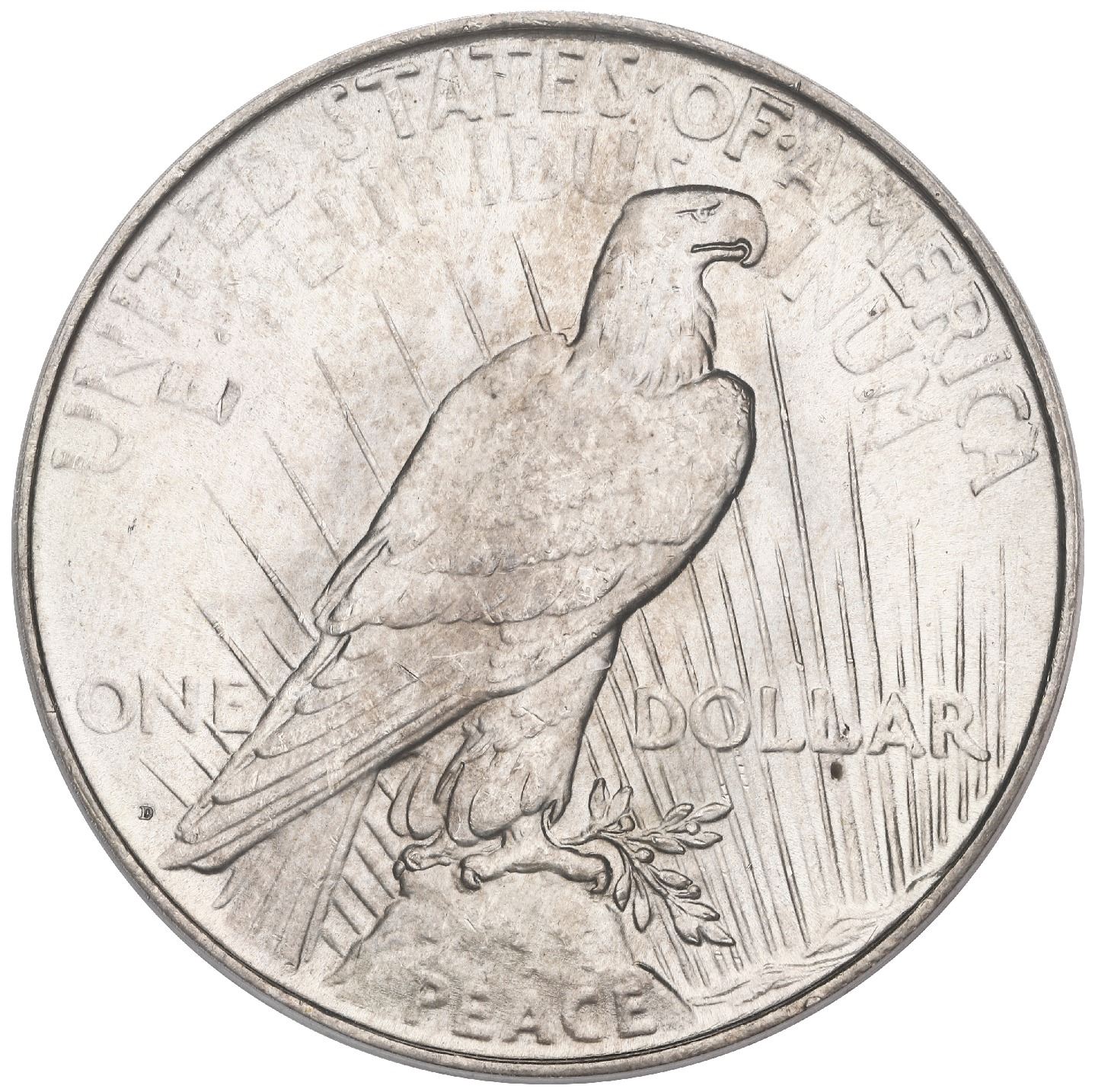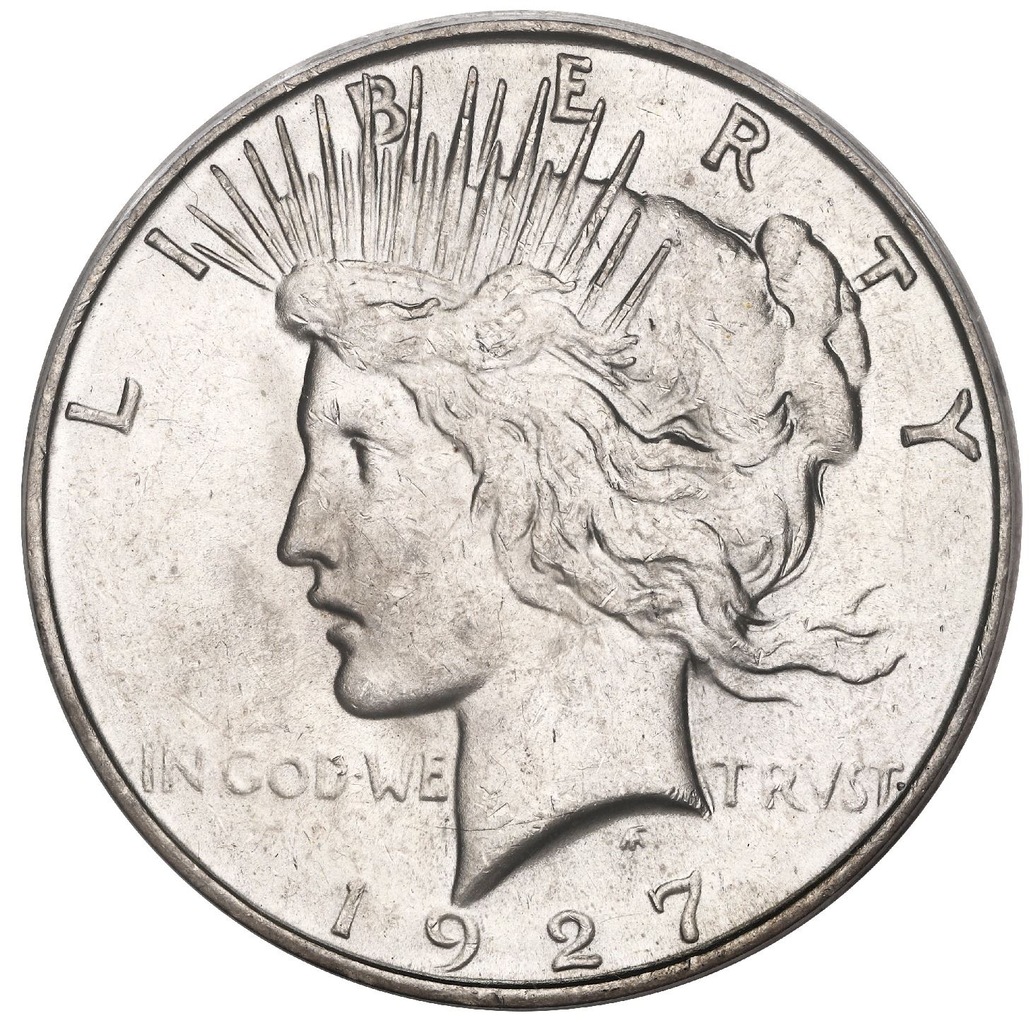 USA (Denver Mint), Peace dollar, 1927-D, PCGS MS62. Brilliant, lustrous surfaces with minor bagmarks on the obverse, the reverse quite nice with bands of red-gold toning. PCGS #12463331.