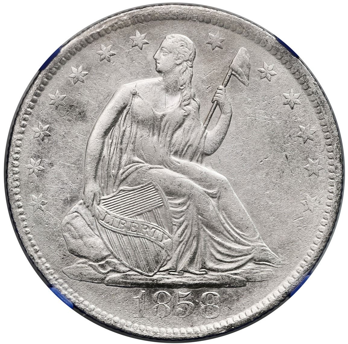 USA (New Orleans Mint), Seated Liberty half dollar, 1858-O, doubled 8 variety, NGC Shipwreck Effect