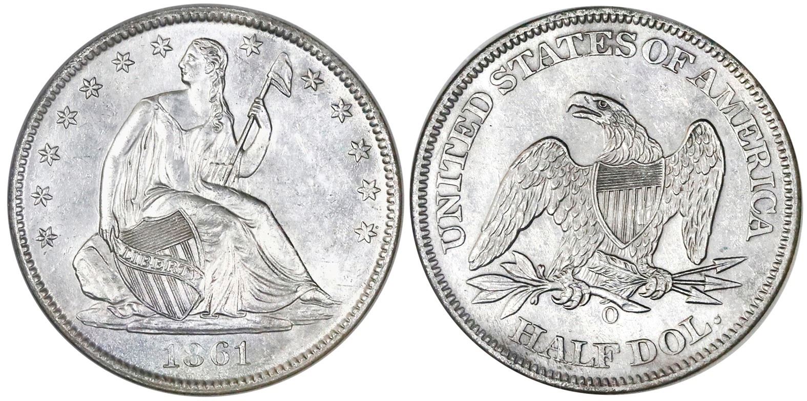 USA (New Orleans), half dollar Seated Liberty, 1861-O, NGC SS Republic / shipwreck effect.