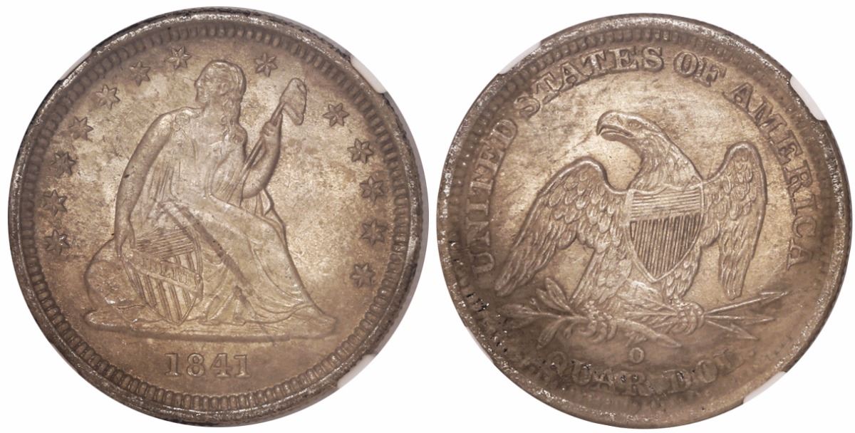 USA (New Orleans mint), quarter dollar seated Liberty, 1841-O, encapsulated NGC UNC details / enviro
