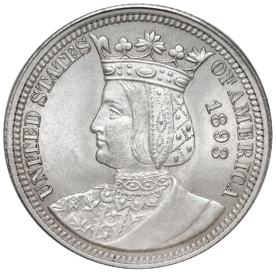 USA (Philadelphia Mint), Isabella commemorative silver quarter, 1893, PCGS MS63. Well struck with sharp details and original surfaces free of any distracting marks, very subdued luster. PCGS #06580810.