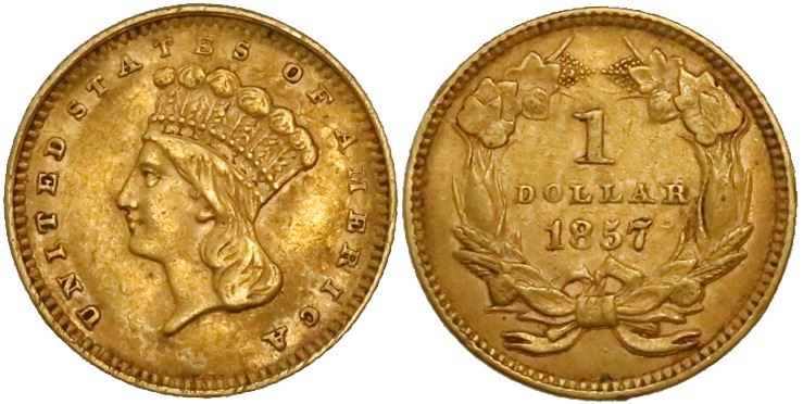 USA (Philadelphia mint), $1 large Indian princess head (Type III), 1857.