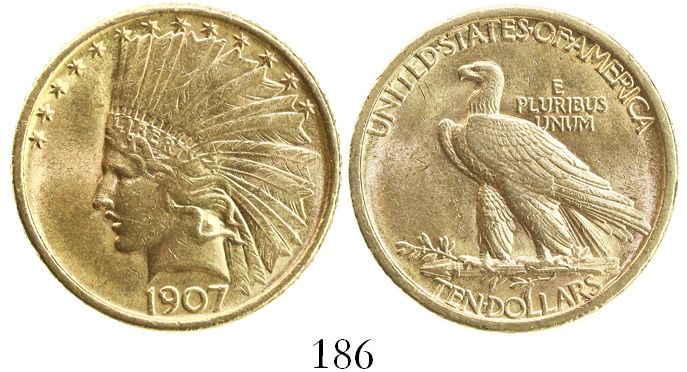 USA (Philadelphia mint), $10 Indian head, 1907.