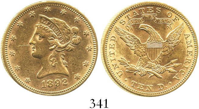 USA (Philadelphia mint), $10 (eagle) coronet Liberty, 1892, rare.
