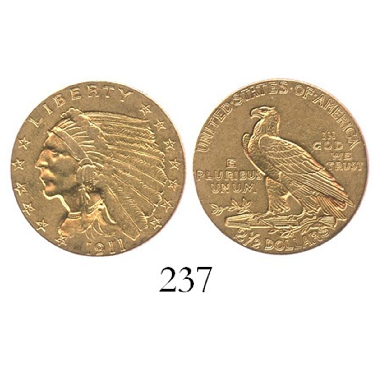 USA (Philadelphia mint), $2-1/2 Indian, 1911. KM-128. 4.2 grams. Problem-free XF.