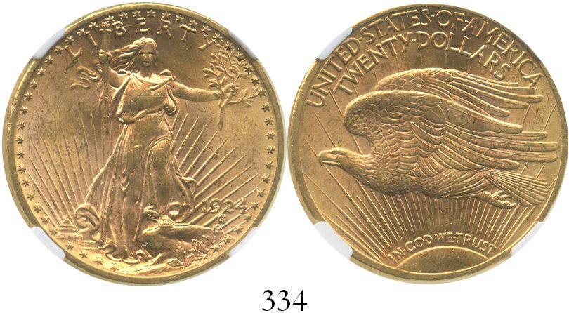 USA (Philadelphia mint), $20 (double eagle) St. Gaudens, 1924, encapsulated NGC MS 62.
