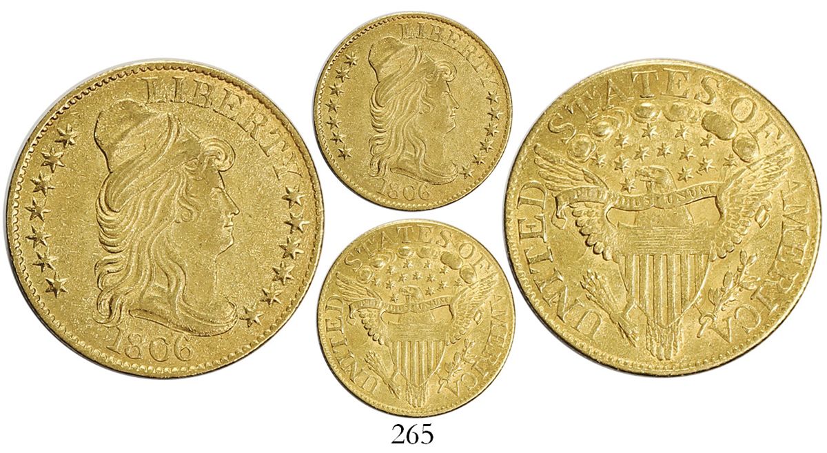 USA (Philadelphia mint), $5 capped-bust Liberty, 1806, round 6, 7+6 stars.