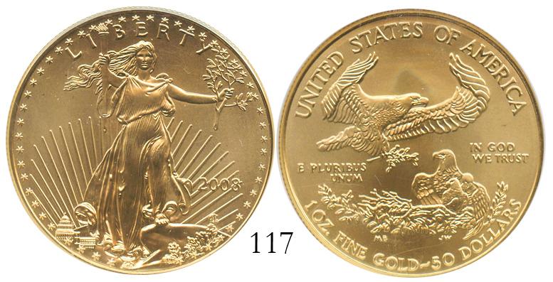 USA (Philadelphia mint), $50 Eagle, 2008, encapsulated Early Releases MS-70.