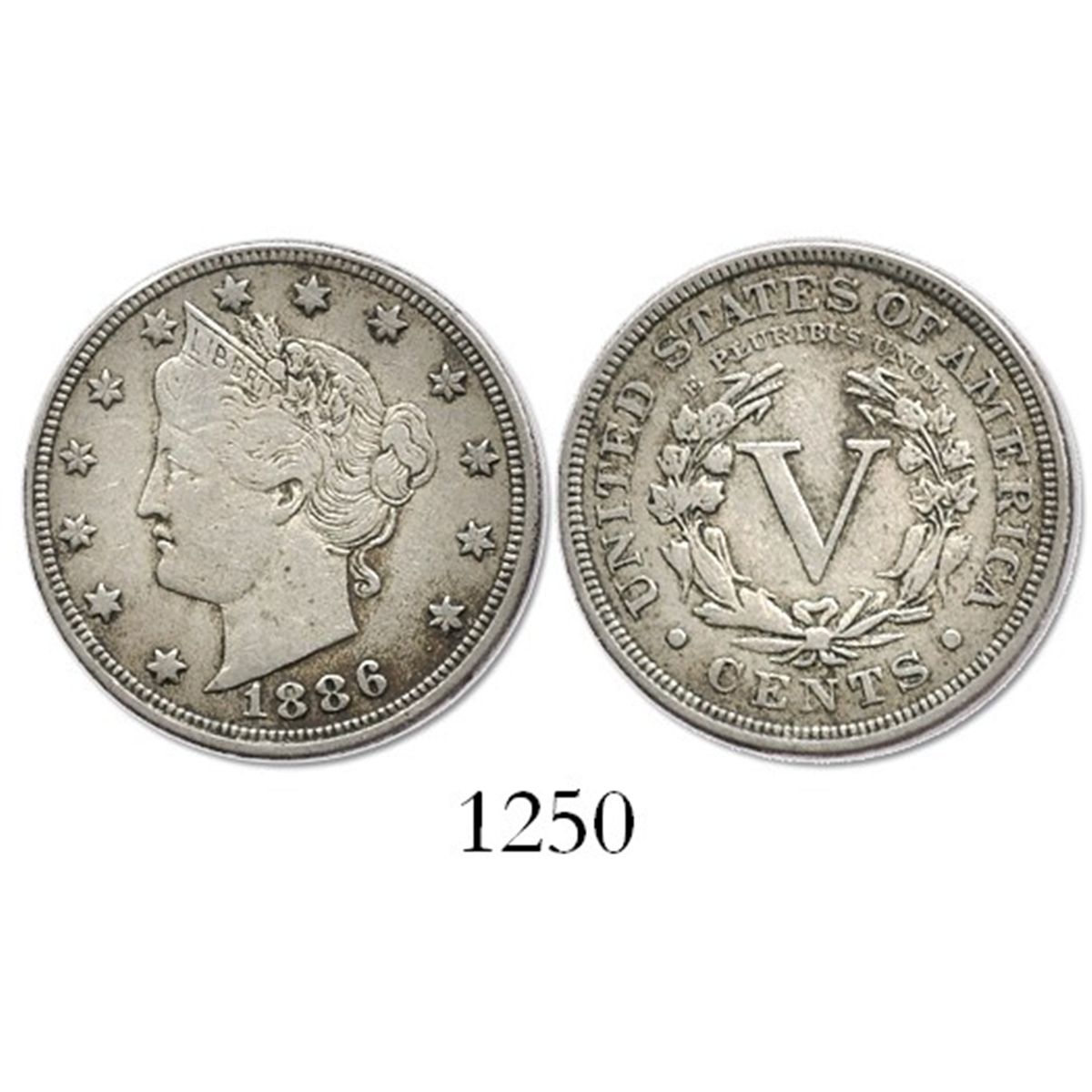 USA (Philadelphia mint), copper-nickel "V" nickel, 1886, key date.
