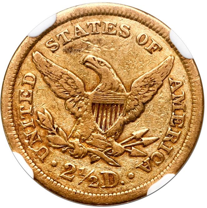 USA (Philadelphia mint), gold $2-1/2 Coronet Liberty quarter eagle, 1843, NGC XF 40. Modestly circulated example of this earlier Liberty Head design with plentiful luster remaining.