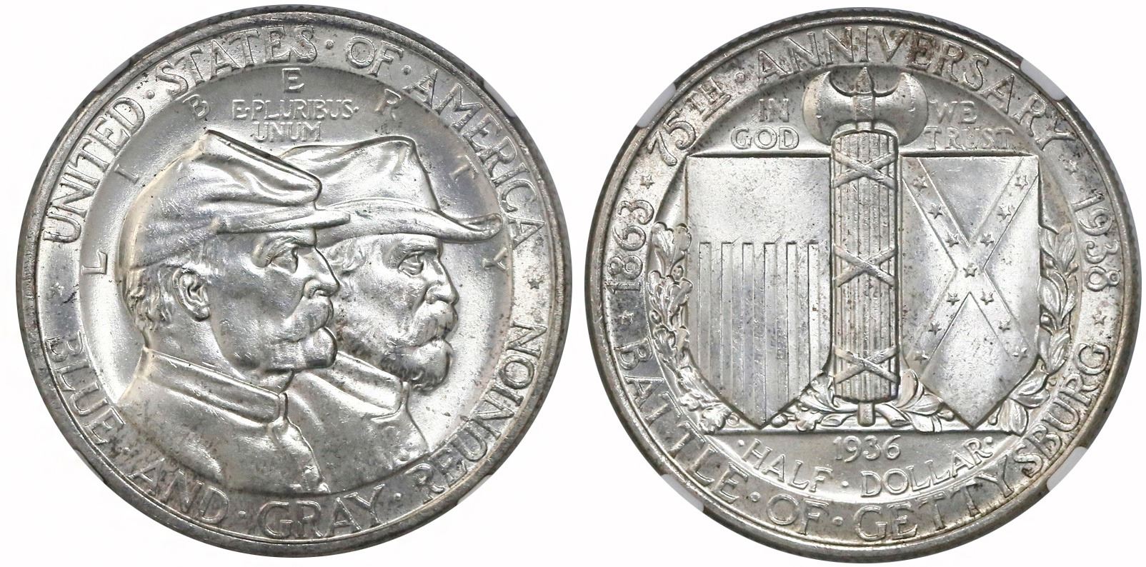 USA (Philadelphia mint), half dollar, 1936, Gettysburg, NGC MS 64.