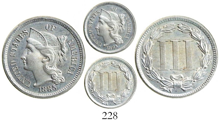 USA (Philadelphia mint), proof copper-nickel 3-cent nickel, 1885.