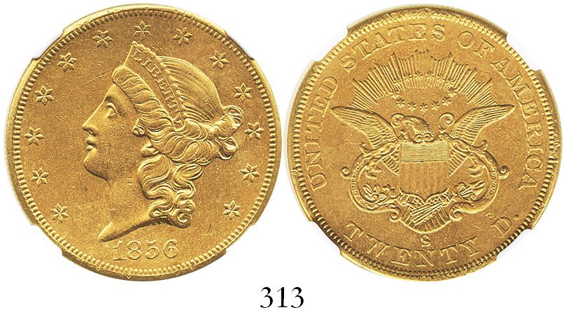 USA (San Francisco mint), $20 (double eagle) coronet Liberty, 1856-S, encapsulated NGC AU details /