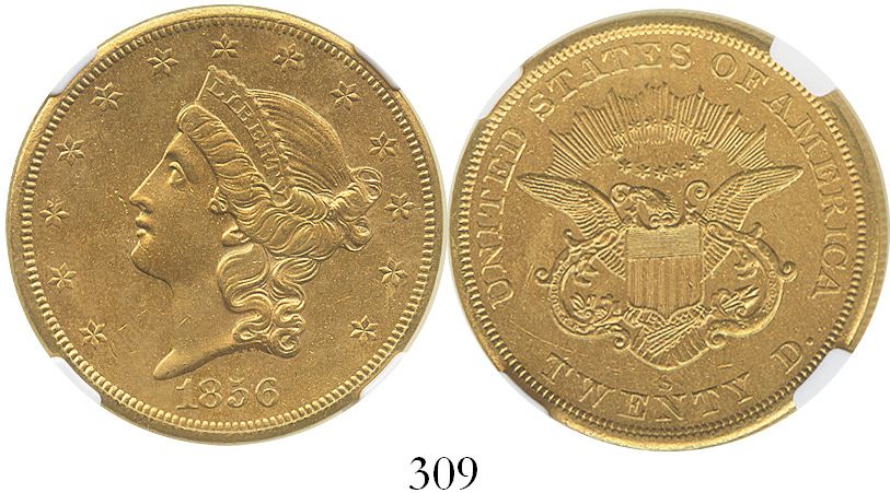 USA (San Francisco mint), $20 (double eagle) coronet Liberty, 1856-S, encapsulated NGC UNC details /