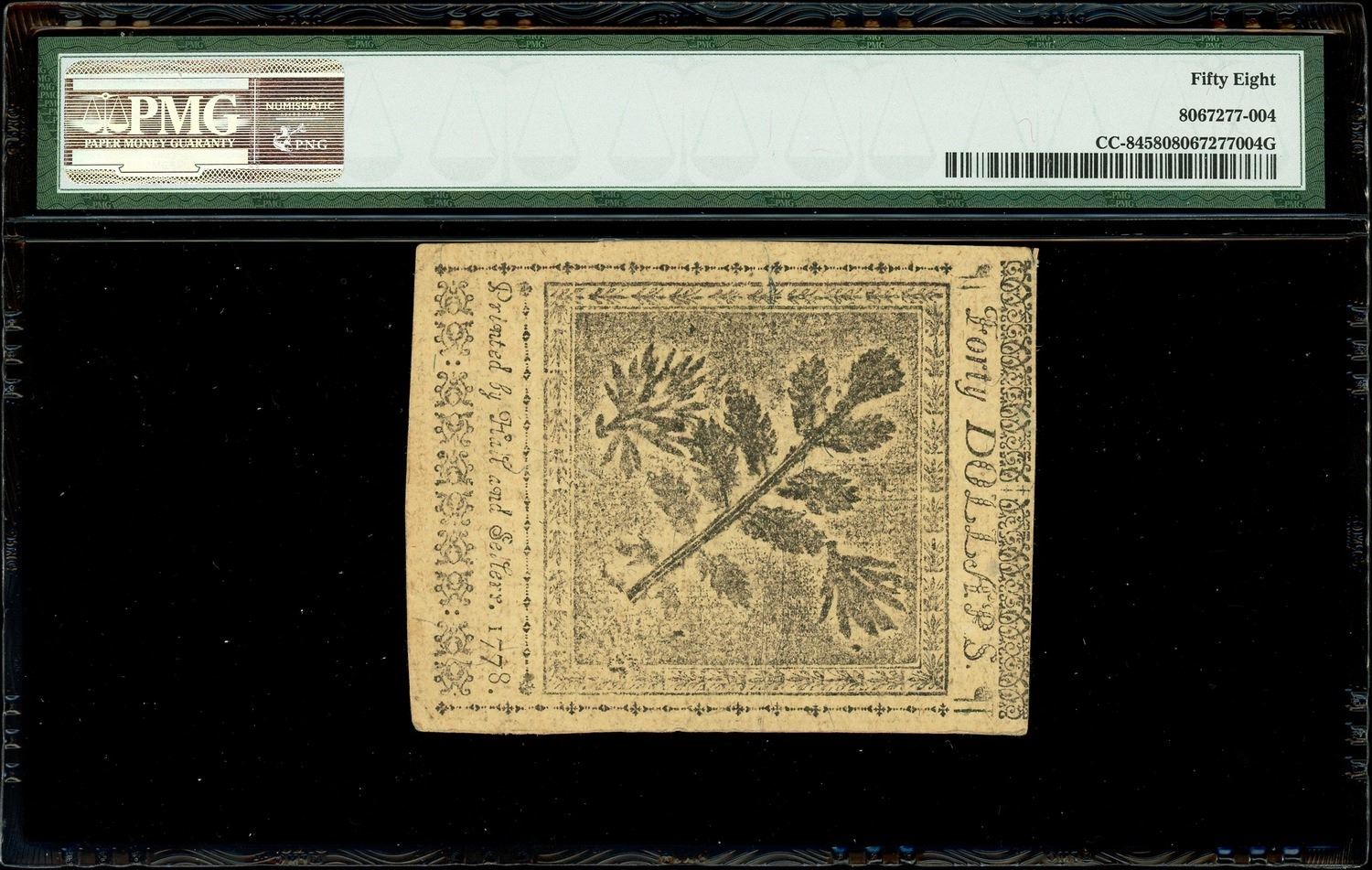 United States, $40, Sept. 26, 1778, serial 78462, PMG Choice AU 58.