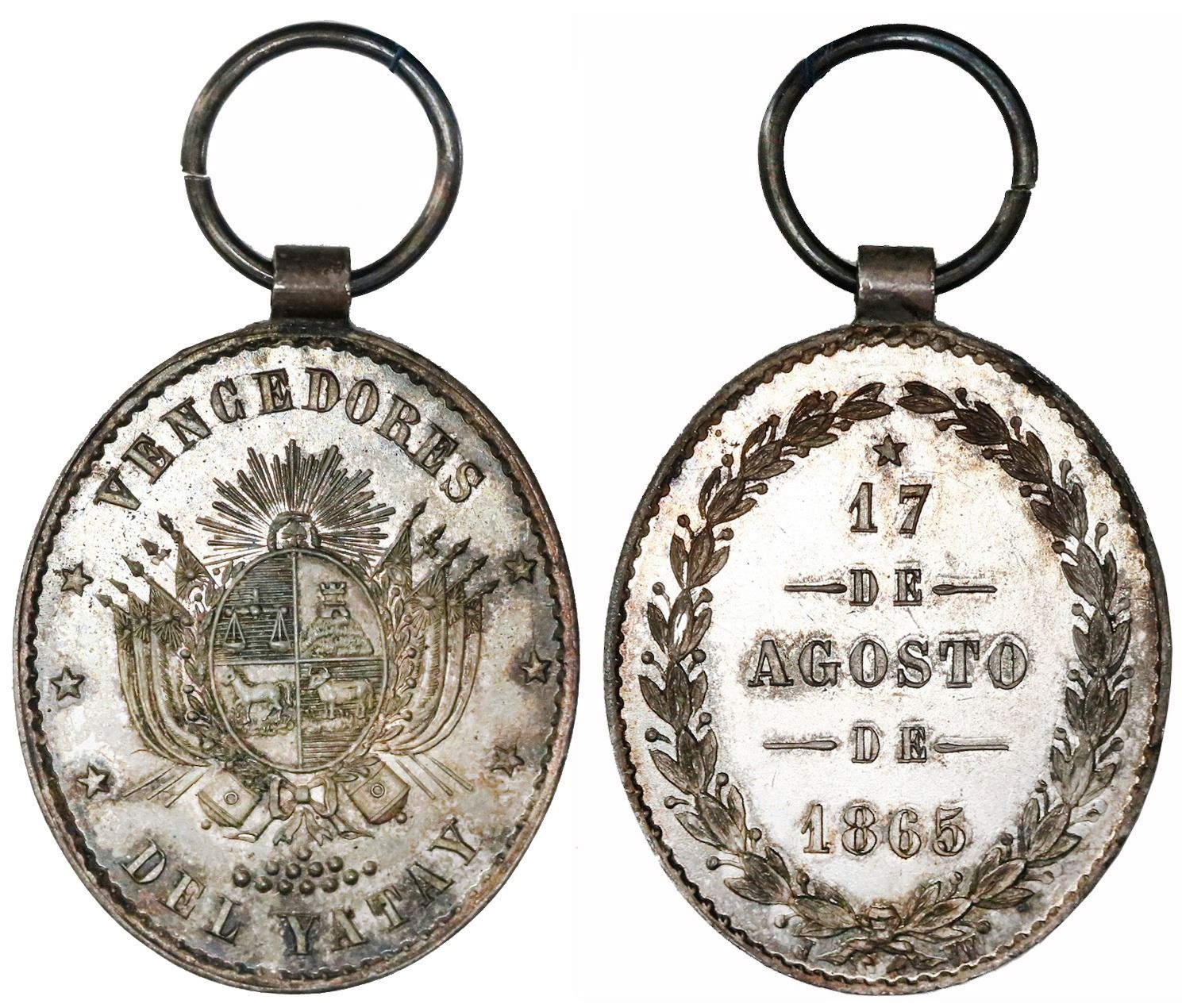 Uruguay, silver oval officer's military medal, 1865, Battle of Yatay.
