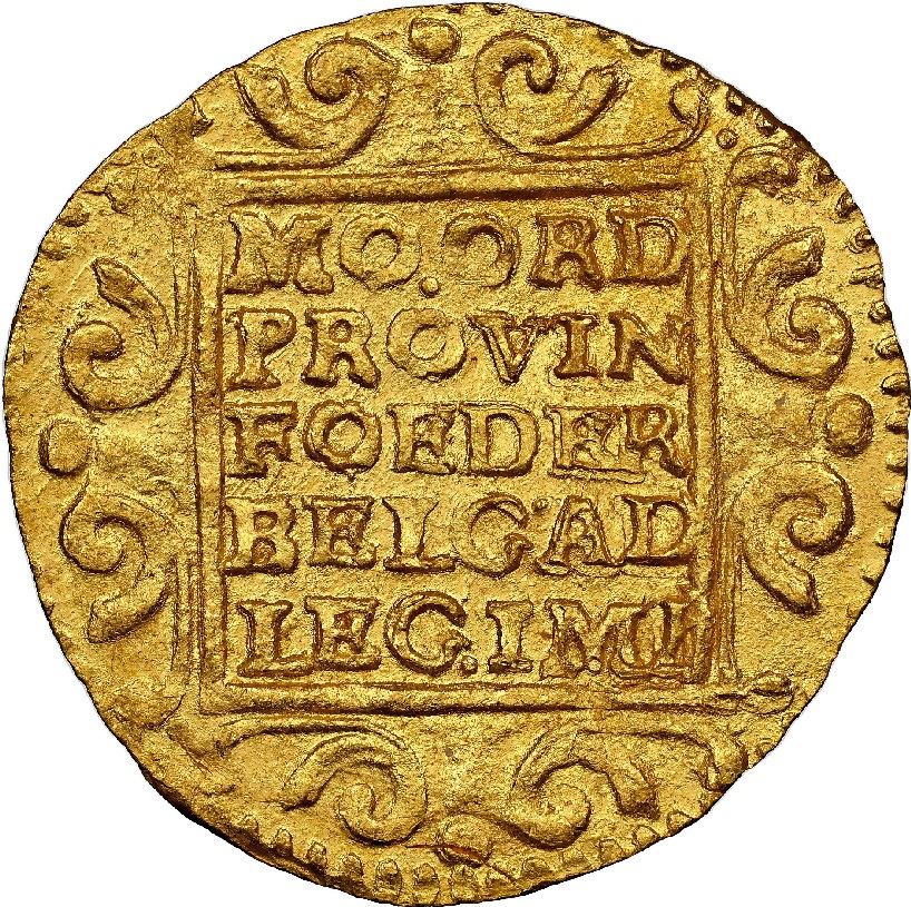 Utrecht, United Netherlands, gold ducat, 1724, NGC MS 63 / Akerendam (Shipwreck Blue Label). KM-7.1; Fr-285. Smooth fields with nice luster, good strike except for slight weakness on knight's head. Recovered from: Akerendam, sunk in 1725 off Norway
