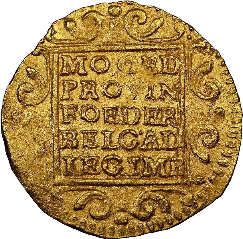 Utrecht, United Netherlands, gold ducat, 1724, NGC MS 63 / Akerendam (Shipwreck Blue Label). KM-7.1; Fr-285. Mostly bold strike (including knight's head) except for a small weak area near edge, good luster, faint bagmarks in fields. Recovered from: Akerendam, sunk in 1725 off Norway