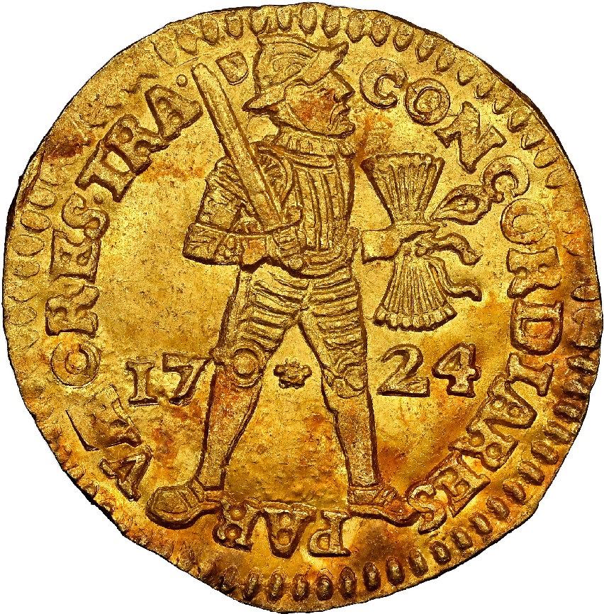 Utrecht, United Netherlands, gold ducat, 1724, NGC MS 63 / Akerendam (Shipwreck Blue Label).